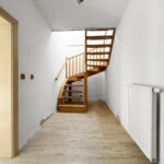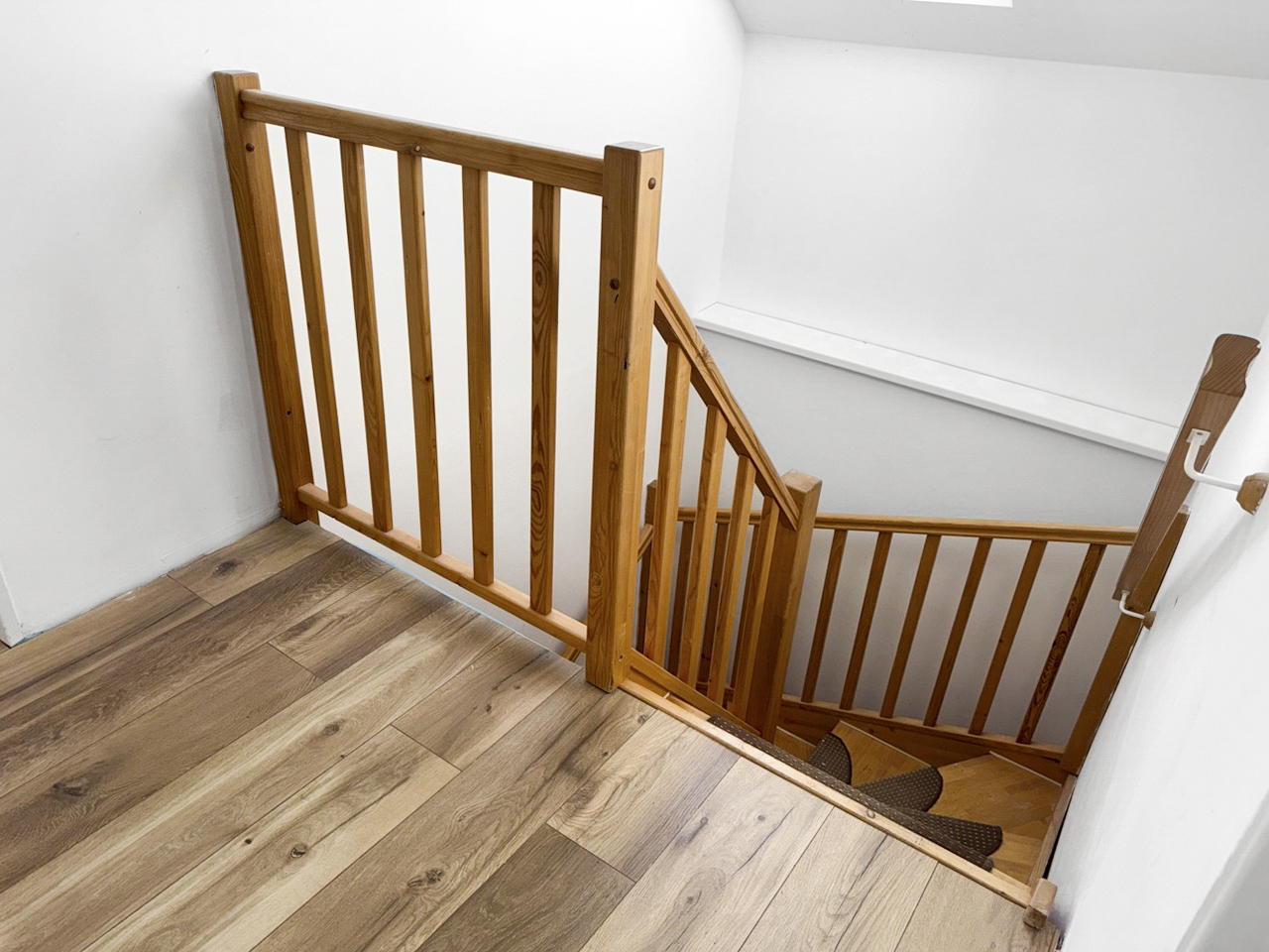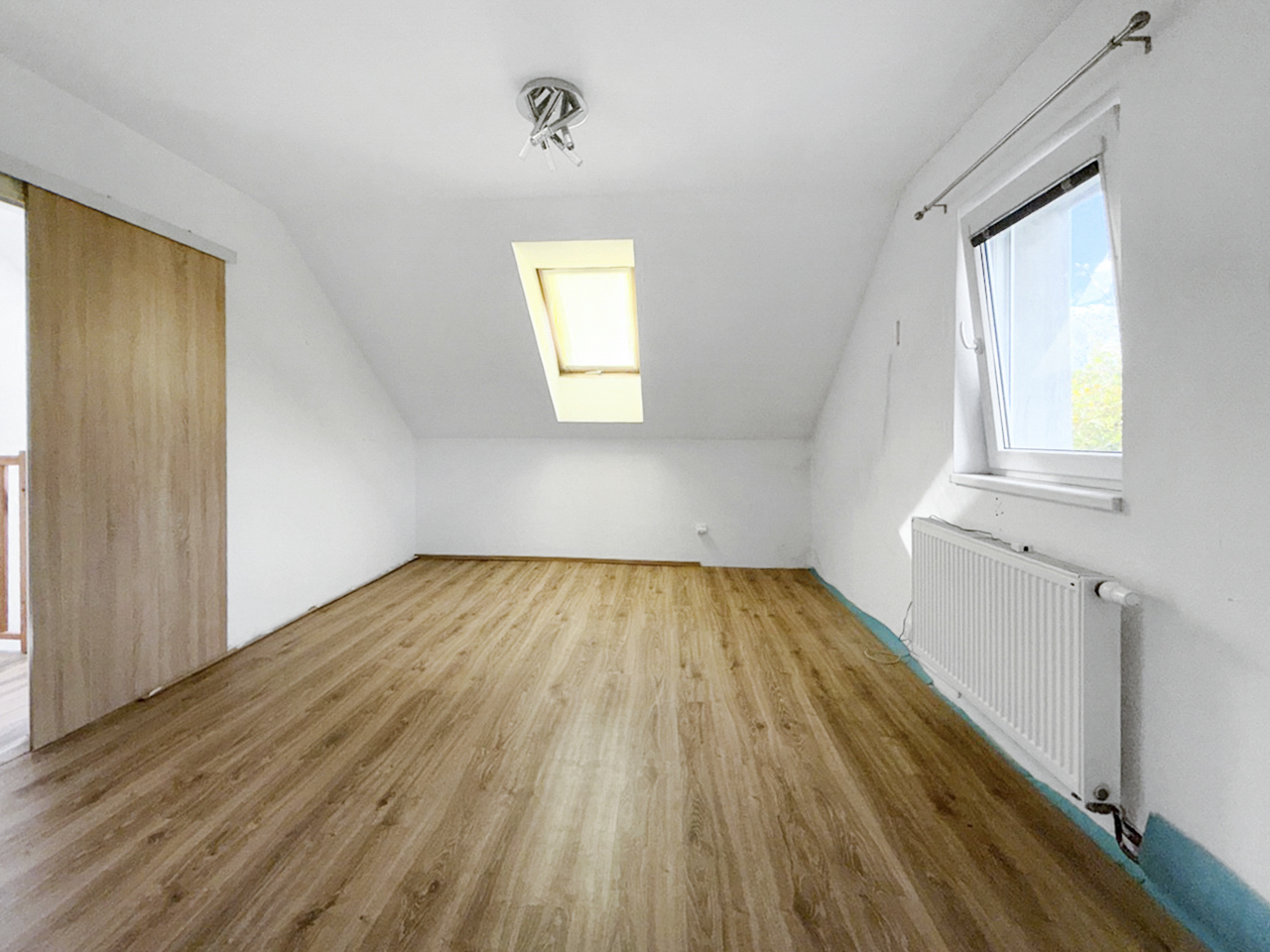 V patře jsou dva samostatné pokoje a komora s elektrickým kotlem vhodná jako úložný prostor.
