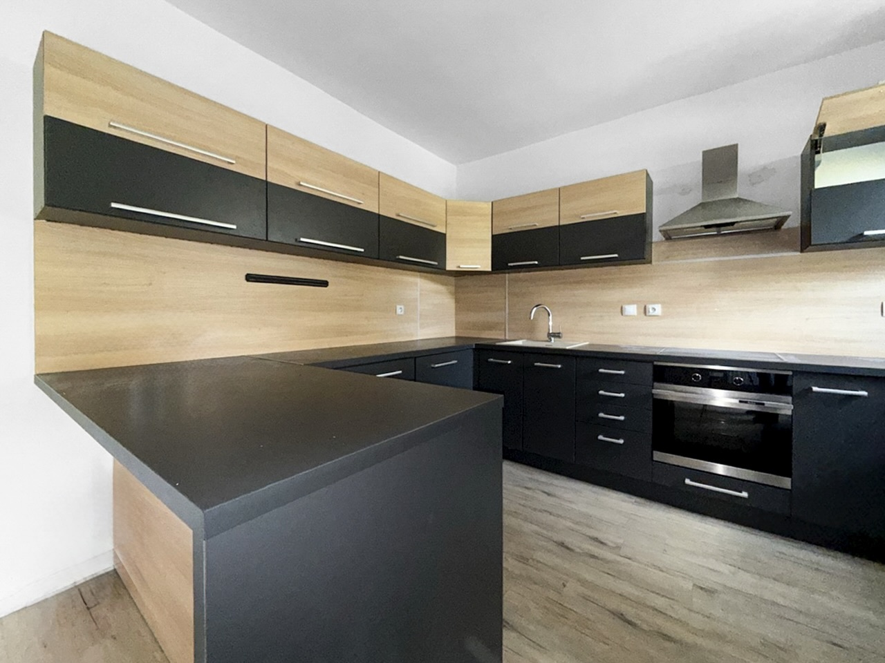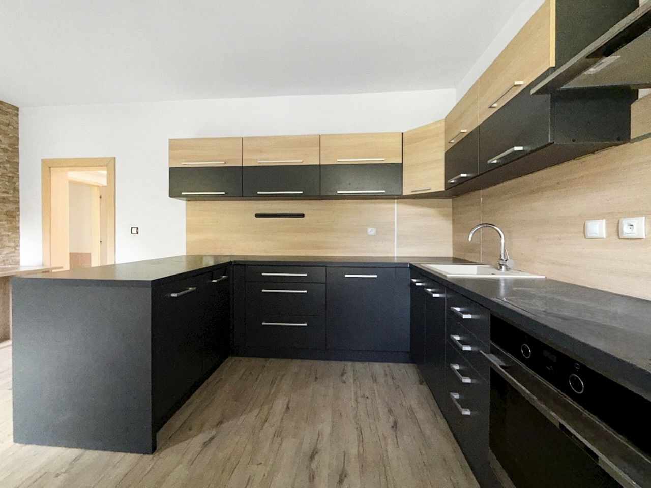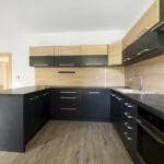 V přízemí se nachází chodba, koupelna s WC, kuchyně s vestavěnými spotřebiči a obývací pokoj.
